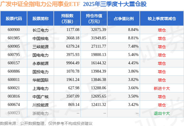 本站音信开云体育,日前广发中证全指电力公用行状ETF基金公布三季报,2025年三季度最新界限36.27亿元,季度净值涨幅为3.97%。
